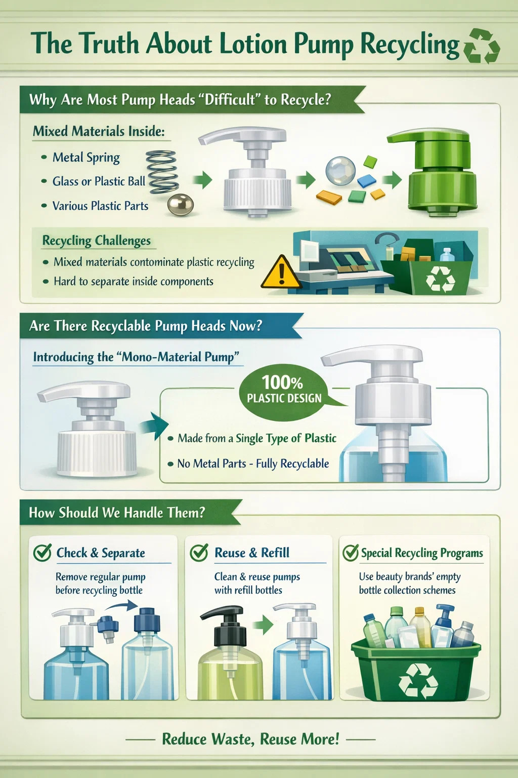 Pertanyaan apakah pompa losion dapat didaur ulang, dan apakah kita harus mendaur ulangnya, sebenarnya merupakan topik yang cukup menarik.