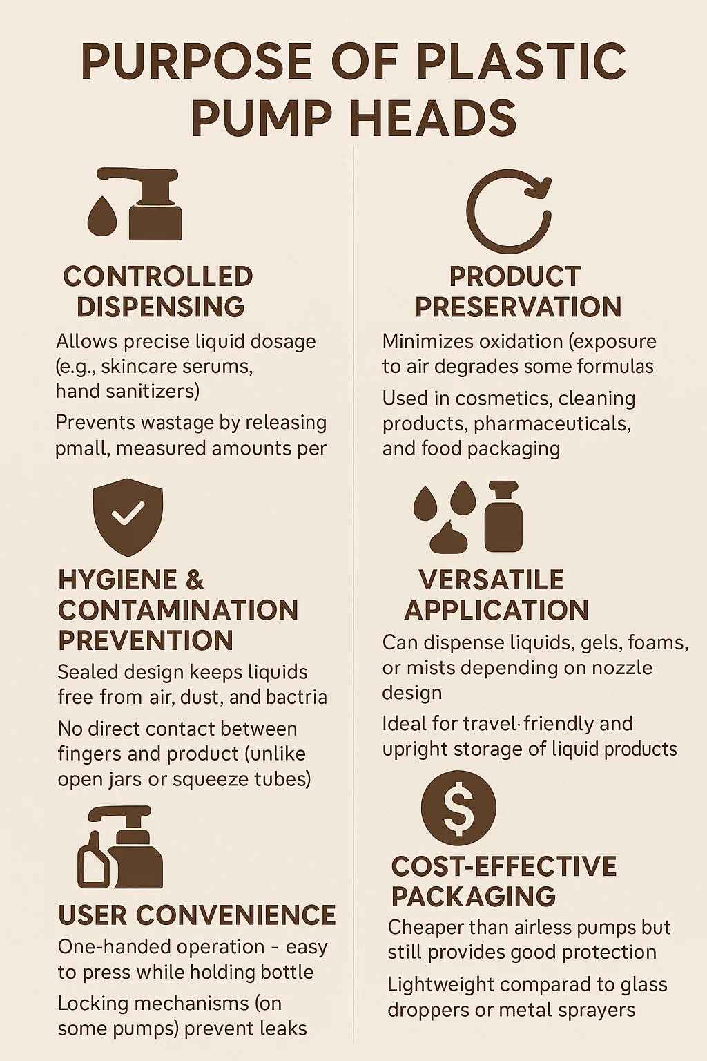 Memungkinkan dosis cairan yang tepat (mis., Serum perawatan kulit, pembersih tangan).